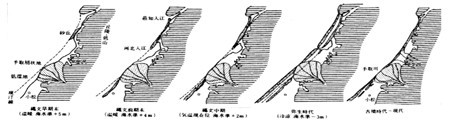羽咋・金沢・小松における縄文~古墳時代の地形図(藤 則雄,1975)